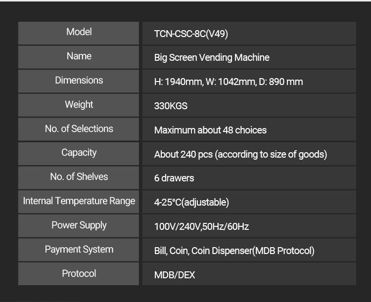 TCN-CSC-8C(V49)Slim raakskerm/advertensie-outomaat