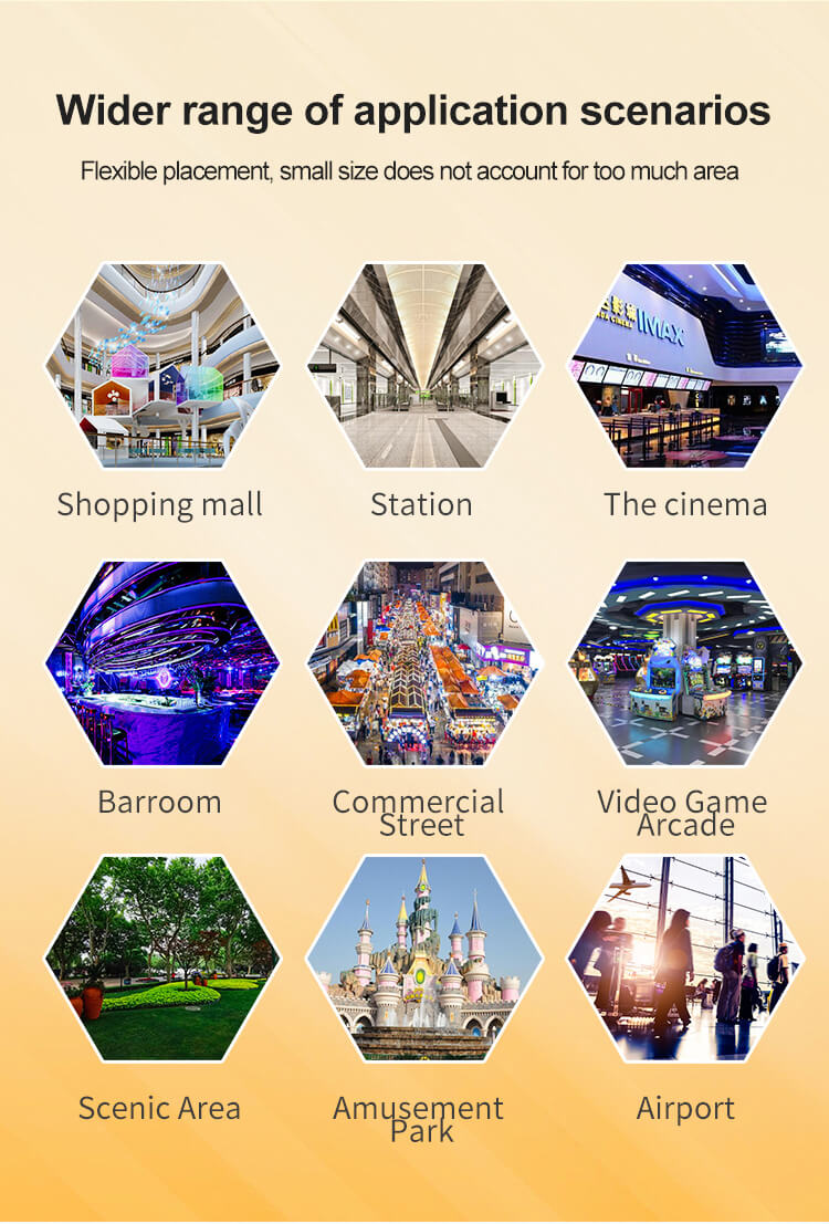 Implementación multiescenario 24/7: Diseño compacto que se adapta a más de 8 lugares: centros comerciales, estaciones de metro, cines, bares.