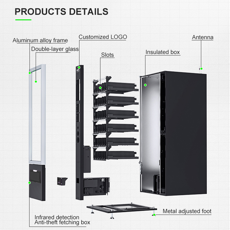 1.Gabinete con recubrimiento de polvo de alta resistencia con material totalmente aislado, unidad expendedora de bajo consumo energético.