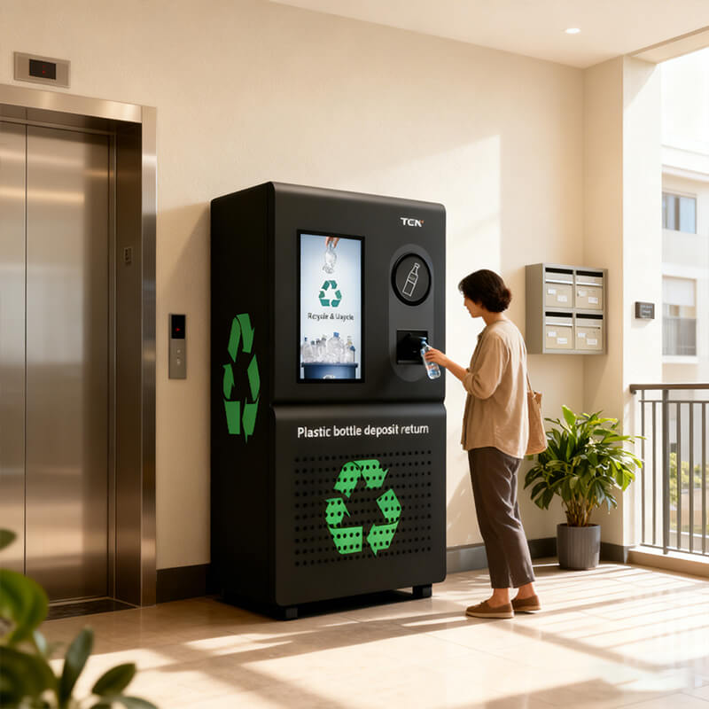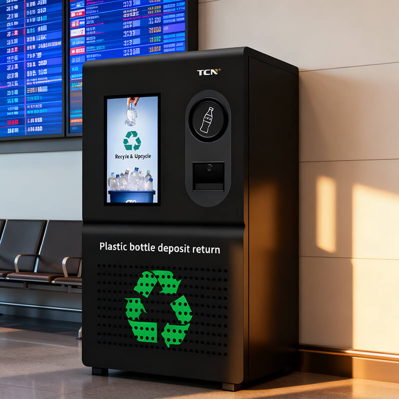 Diseñado para Abordar los desafíos de los residuos en espacios públicos de alto tráficoAl igual que los aeropuertos, los centros comerciales y las comunidades, promueve eficazmente una economía circular al garantizar que materiales valiosos como las botellas de PET se devuelvan al ciclo de producción.