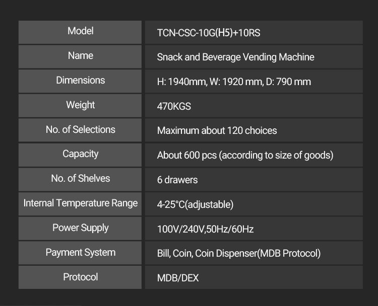TCN-CSC-10G (H5) + 10RS greim-bìdh comas mòr agus inneal reic dibhe