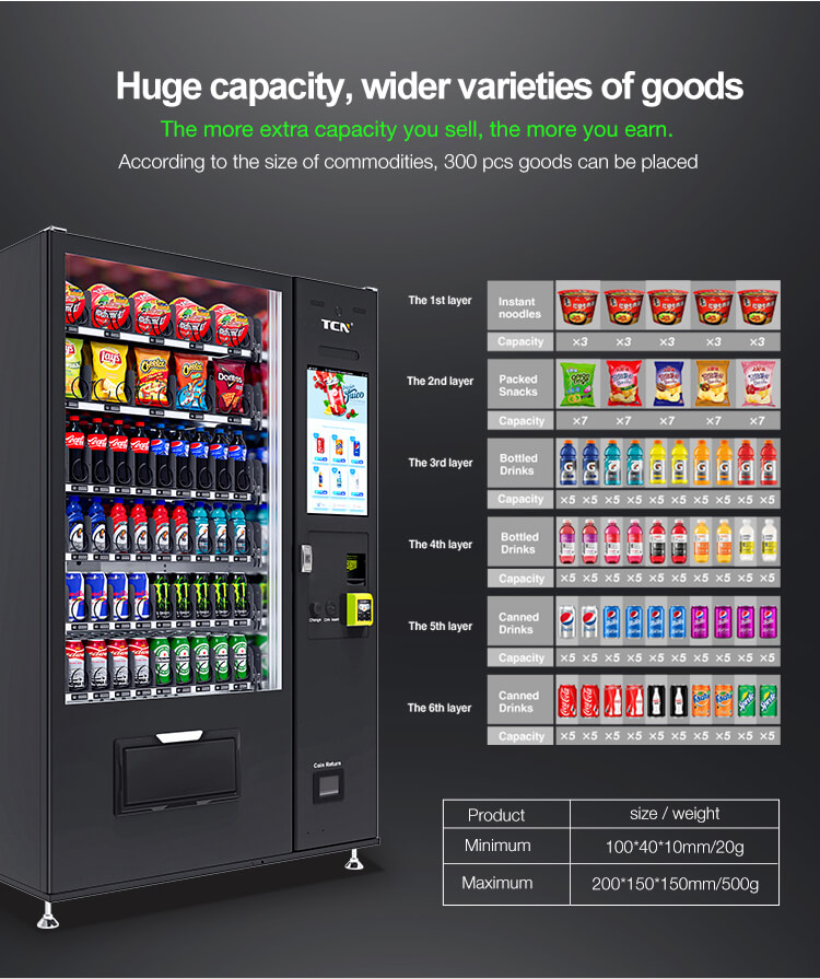 TCN વેન્ડિંગ મશીન ઘણી પ્રકારની પેમેન્ટ સિસ્ટમને સપોર્ટ કરી શકે છે.
