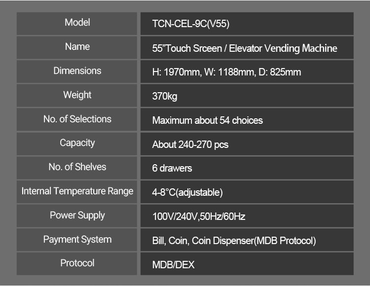 TCN वेंडिंग मशीन अनेक प्रकारच्या पेमेंट सिस्टमला सपोर्ट करू शकते.