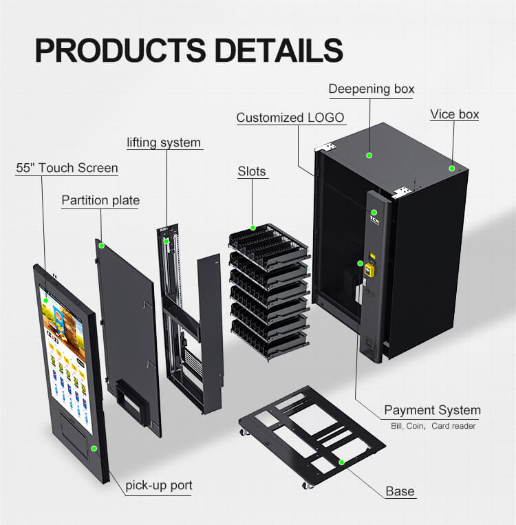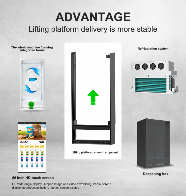 1.उच्च सामर्थ्य आणि पावडर लेपित कॅबिनेट पूर्णतः इन्सुलेटेड सामग्रीसह, ऊर्जा कार्यक्षम व्हेंडिंग युनिट.