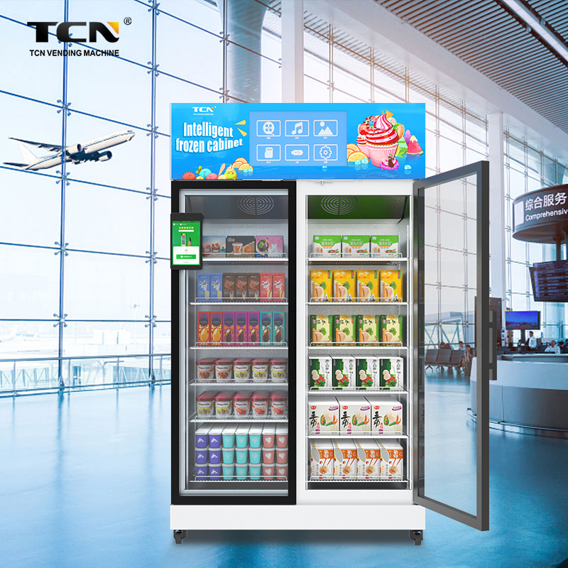 TCN selfdiens slim vrieskas, KI intelligente dinamiese identifikasie, ondersteun die verkoop van alle soorte goedere, neem kragtige verkoeling kompressor aan, gerieflike aanvulling en laai, ondersteun die aanpassing van die meeste betaalmetodes.