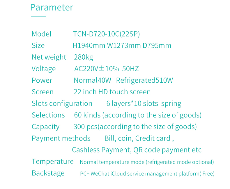 $914 TCN-D720-10(32SP) መጠጥ እና መክሰስ መሸጫ ማሽን