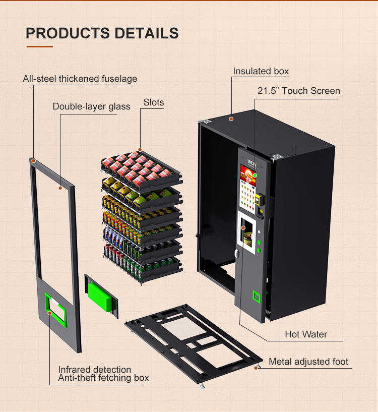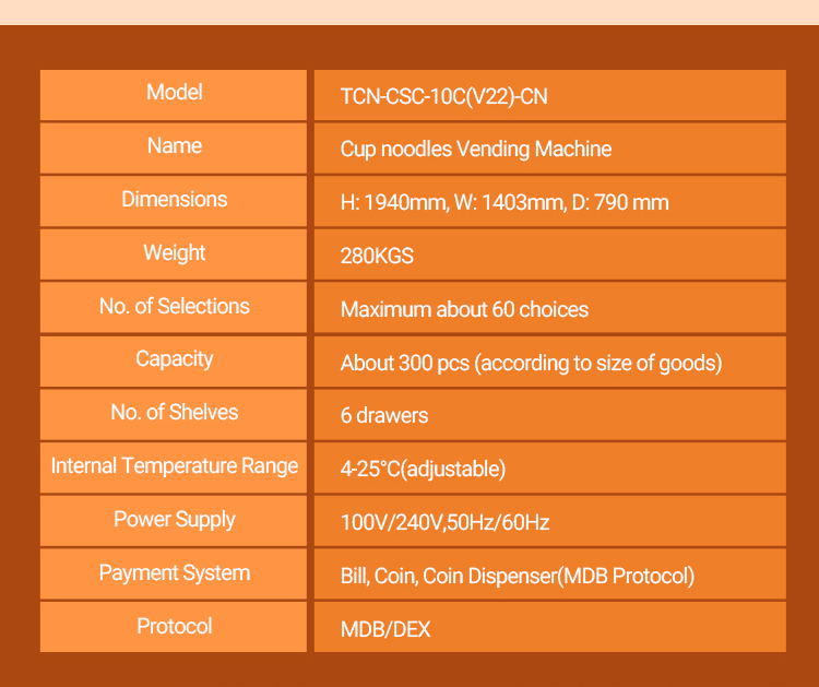 The tcn Cup Noodles vending machine provides hot water supply, which is very convenient.
