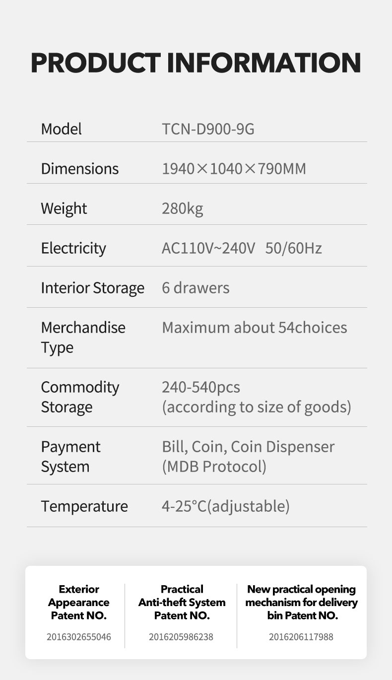TCN-D900-9G(H5) mini båndtransportør lift kølet øl combo salgsautomat dispenser maskine til frugtsalat