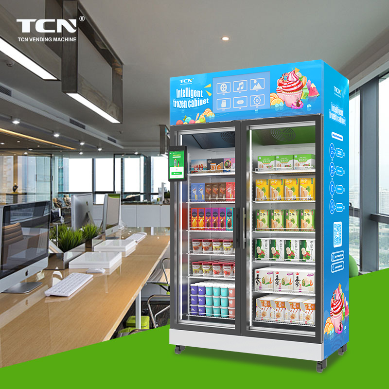 TCN self-service smart fryser, AI intelligent dynamisk identifikation, understøtter salg af alle slags varer, vedtager kraftfuld kølekompressor, bekvem genopfyldning og lastning, understøtter tilpasningen af de fleste betalingsmetoder.