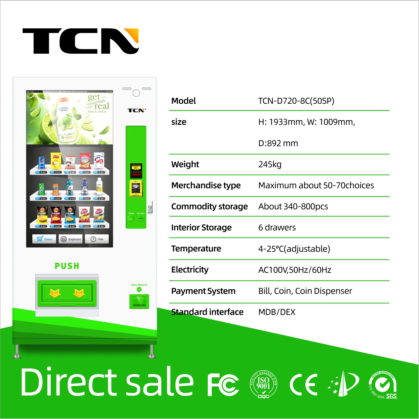 Promotion à durée limitée sur les distributeurs automatiques TCN, à partir de 50% de réduction, avec livraison en 15 jours ouvrables. Contactez-nous dès maintenant !