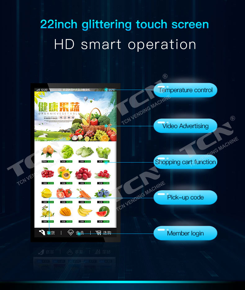 TCN-CFS-8V (V22) Distributeur automatique populaire de salade de légumes frais de fruits sains TCN avec écran tactile