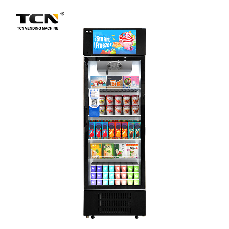 Congélateur intelligent en libre-service TCN, identification dynamique intelligente AI, prend en charge la vente de toutes sortes de marchandises, adopte un compresseur de réfrigération puissant, un réapprovisionnement et un chargement pratiques, prend en charge la personnalisation de la plupart des méthodes de paiement.
