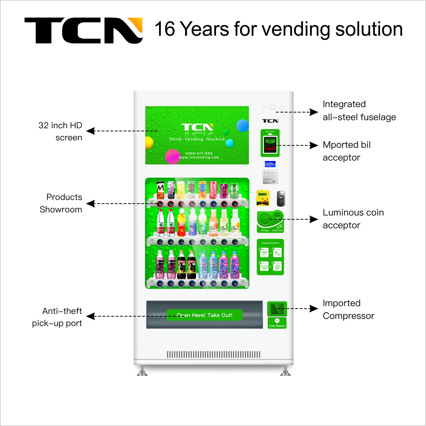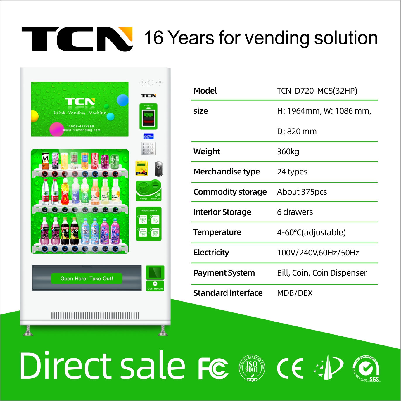 TCN-D720-MCS OEM ODM máquina automática de venda automática de bebidas enlatadas de cola