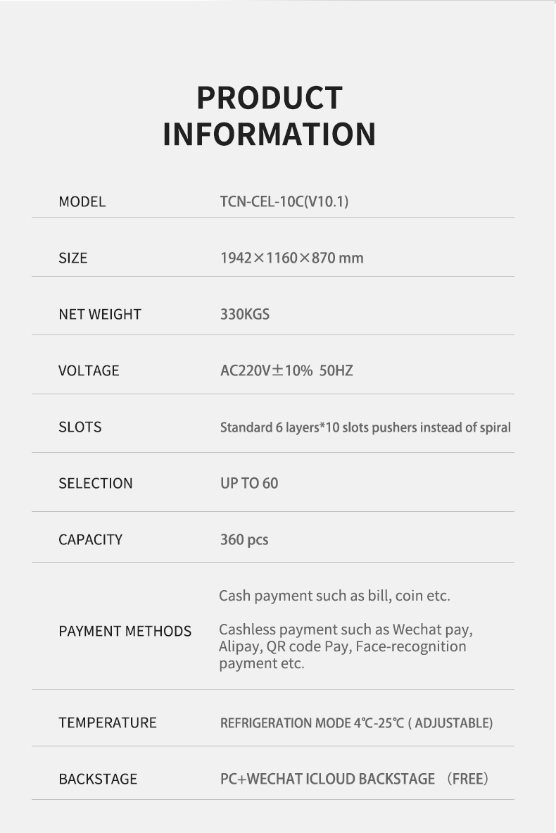 TCN-CEL-9C(V10.1)24 පැය ස්වයං සේවා සලාද එළවලු පලතුරු සංයුක්ත විකුණුම් යන්ත්ර නිෂ්පාදකයා
