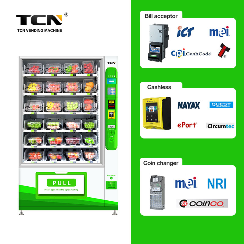 පළතුරු සලාද සඳහා TCN-CEL-11G (H5) බෙල්ට් වාහක සෝපානය ශීතකරණය කළ බියර් කොම්බෝ සෞඛ්ය සම්පන්න ආහාර විකුණුම් යන්ත්රය