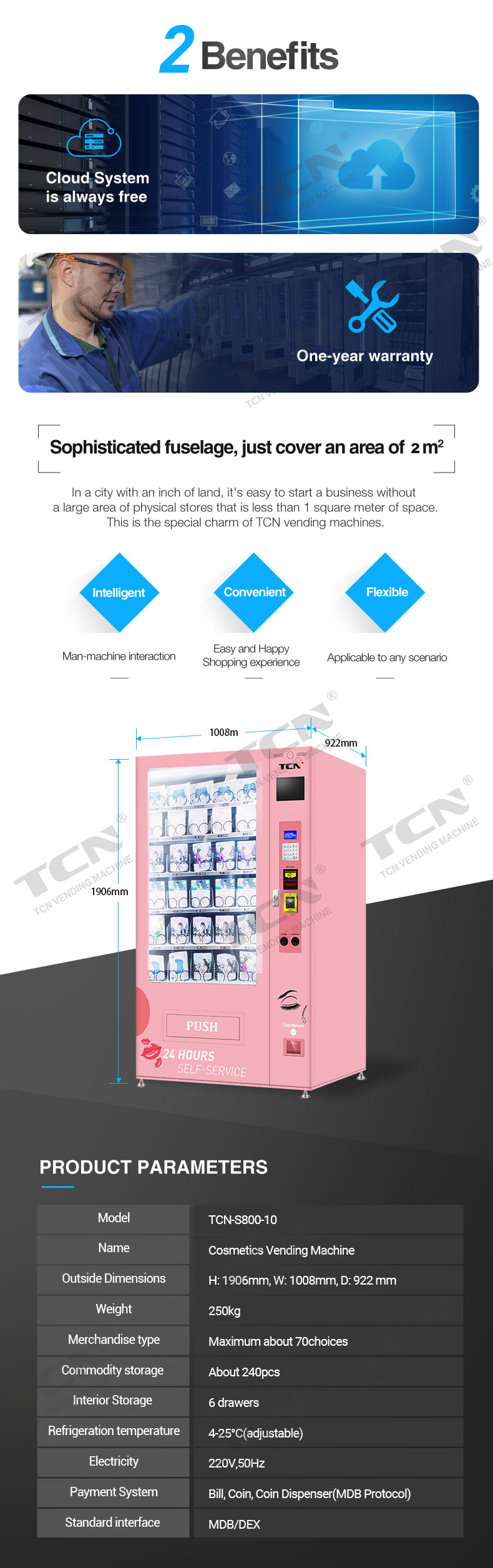 TCN දුරස්ථ කළමනාකරණ පද්ධති සේවාව සමඟ, විකුණුම්කරුවන්ට ඔවුන්ගේ විකුණුම් යන්ත්රය වඩාත් කාර්යක්ෂම හා ලාභදායී ලෙස කළමනාකරණය කළ හැකි අතර, මධ්යගත ඉන්වෙන්ටරි කළමනාකරණය, ඒකාබද්ධ විකුණුම් කළමනාකරණය සහ ලුහුබැඳීම වැනි තත්ය කාලීන දත්ත සමඟ පුළුල් හා පහසුවෙන් භාවිතා කළ හැකි විශේෂාංග වලින් ප්රතිලාභ ලබා ගත හැකිය. , මුදල් එකතු කිරීමේ හෝඩුවාව හැකියාව, කොටස් නැවත පිරවීමේ කළමනාකරණය. මේ සියල්ලෙන් අදහස් කරන්නේ අඩු අලාභයක්, අඩු පිරිවැයක්, වැඩි කාර්යක්ෂමතාවයක් සහ වැඩි ලාභයක්.