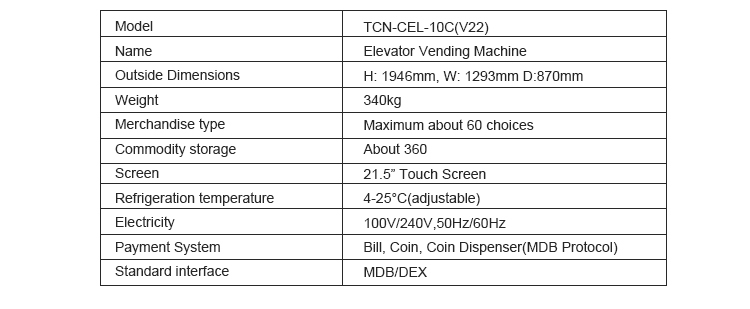TCN-CEL-10C(V22) Healthy Food Elevator Vending Machine (E lumellana le ADA)