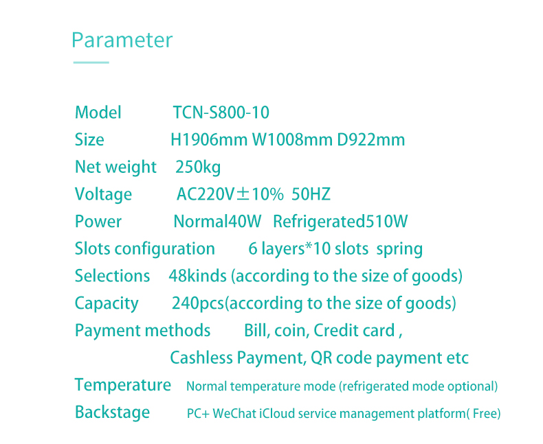 Ka ts'ebeletso ea sistimi ea taolo ea hole ea TCN, baetsi ba vending ba ka tsamaisa mochini oa bona oa ho rekisa ka mekhoa e metle le e nang le phaello, ba ruile molemo ho likarolo tse akaretsang le tse bonolo ho sebelisoa tse nang le data ea nako ea nnete, joalo ka taolo e akaretsang ea thepa, taolo e kopaneng ea thekiso le ts'ebetso , Bokhoni ba ho bokella chelete, taolo ea ho tlatsa thepa. Tsena tsohle li bolela tahlehelo e tlase, theko e tlase, ts'ebetso e ntle le phaello e ngata.