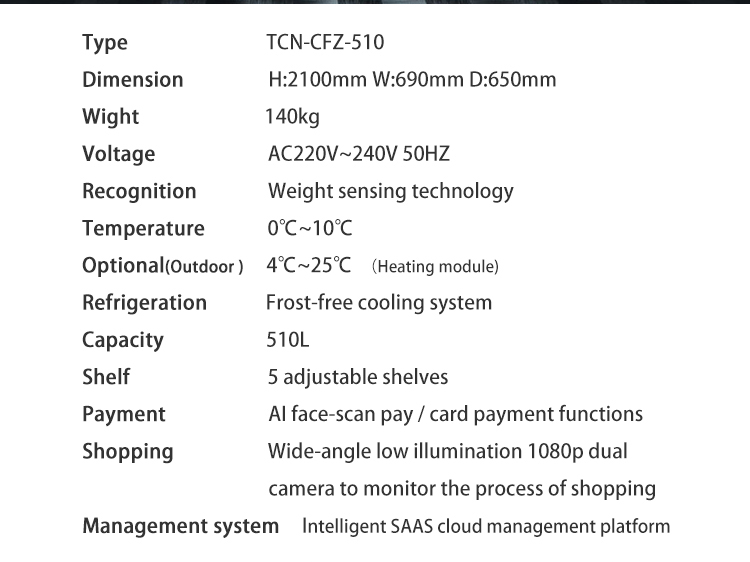 TCN-CFZ-510L 24h Self-Service Micro Market