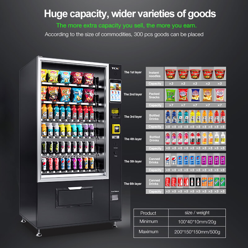 13.Flexible layout for snack,fresh food,cans and bottles.