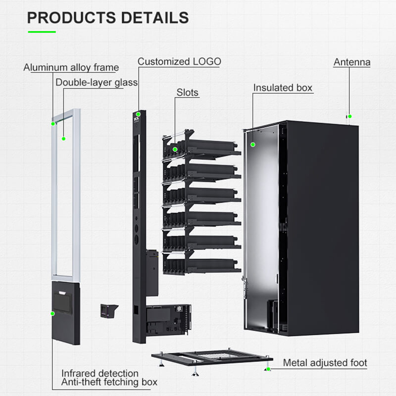 1.High strength & powder coated cabinet with fully insulated material, energy efficient vending unit.