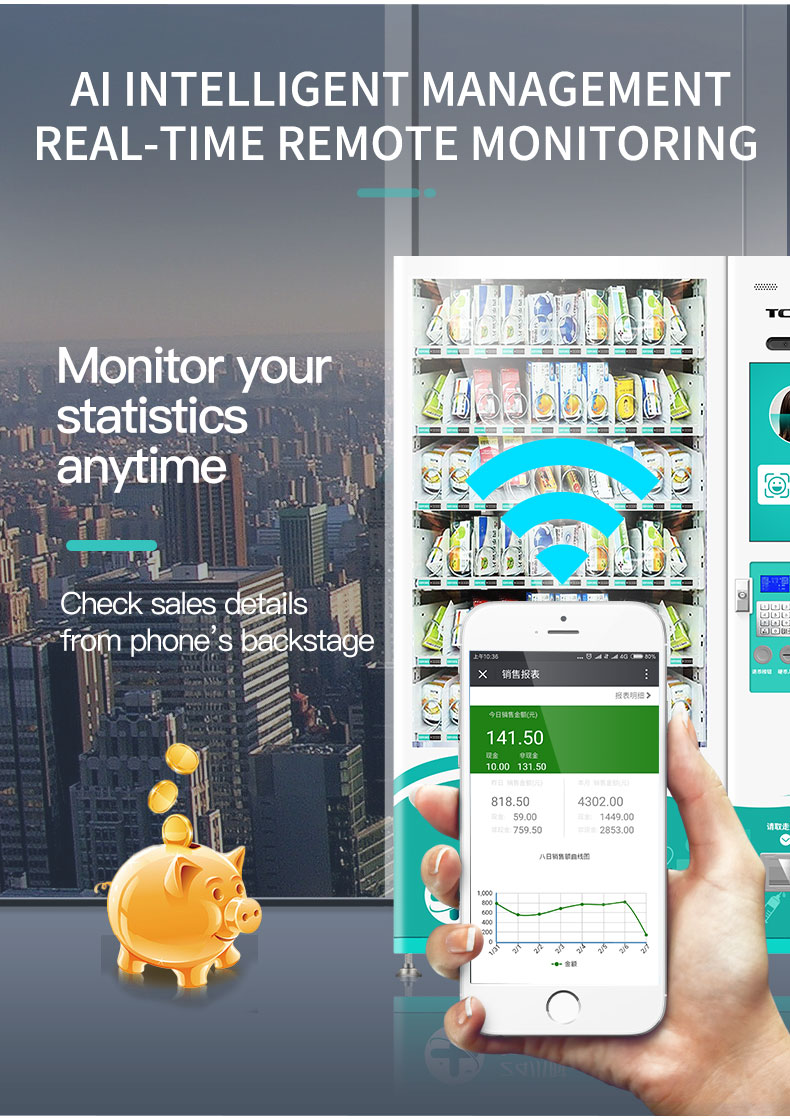 Với dịch vụ hệ thống quản lý từ xa TCN, các nhà điều hành máy bán hàng tự động có thể quản lý máy bán hàng tự động của mình theo cách hiệu quả hơn và có lợi hơn, được hưởng lợi từ các tính năng toàn diện và dễ sử dụng với dữ liệu thời gian thực, chẳng hạn như quản lý hàng tồn kho tập trung, quản lý và theo dõi bán hàng tổng hợp , khả năng theo dõi thu tiền, quản lý bổ sung hàng tồn kho. Tất cả những điều này có nghĩa là ít mất mát hơn, ít chi phí hơn, hiệu quả hơn và nhiều lợi nhuận hơn.